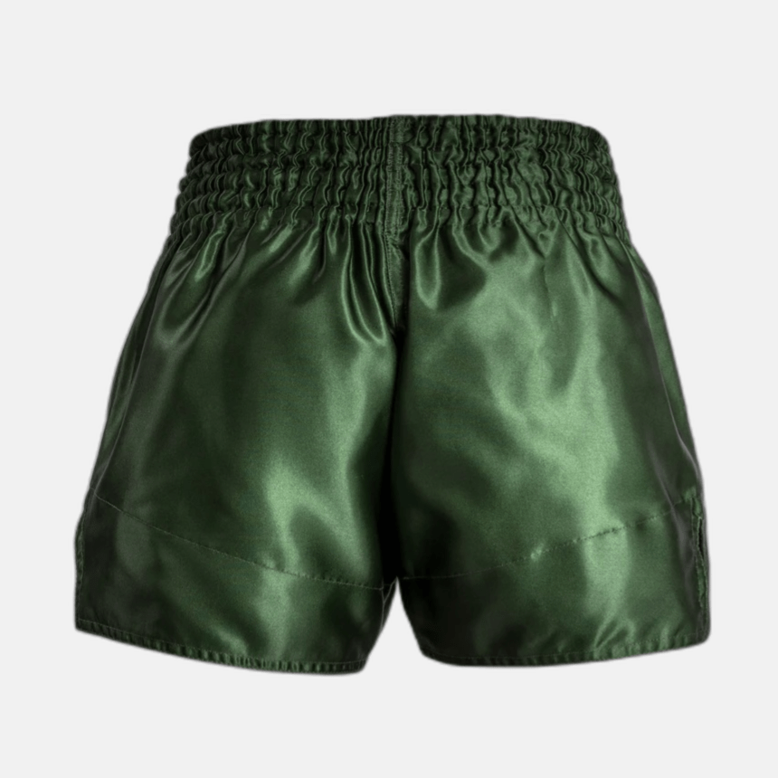 These Muay Thai Classic shorts in khaki-white have a sleek design, with neat finishes and the unmistakable logo at the waist and leg in white